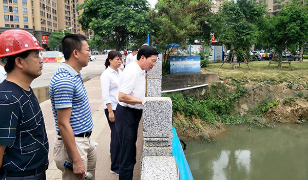 7月18日上午,省人大常委会副主任、市委书记檀云坤带领“三大攻坚战、半年回头看”暨重点项目工作检查组到漳州台商投资区水环境综合治理项目现场检查工作,漳州台商投资区党工委书记蔡丽芬、管委会主任蔡总平,中国水环境集团漳州公司总经理贺彬等人陪同调研。